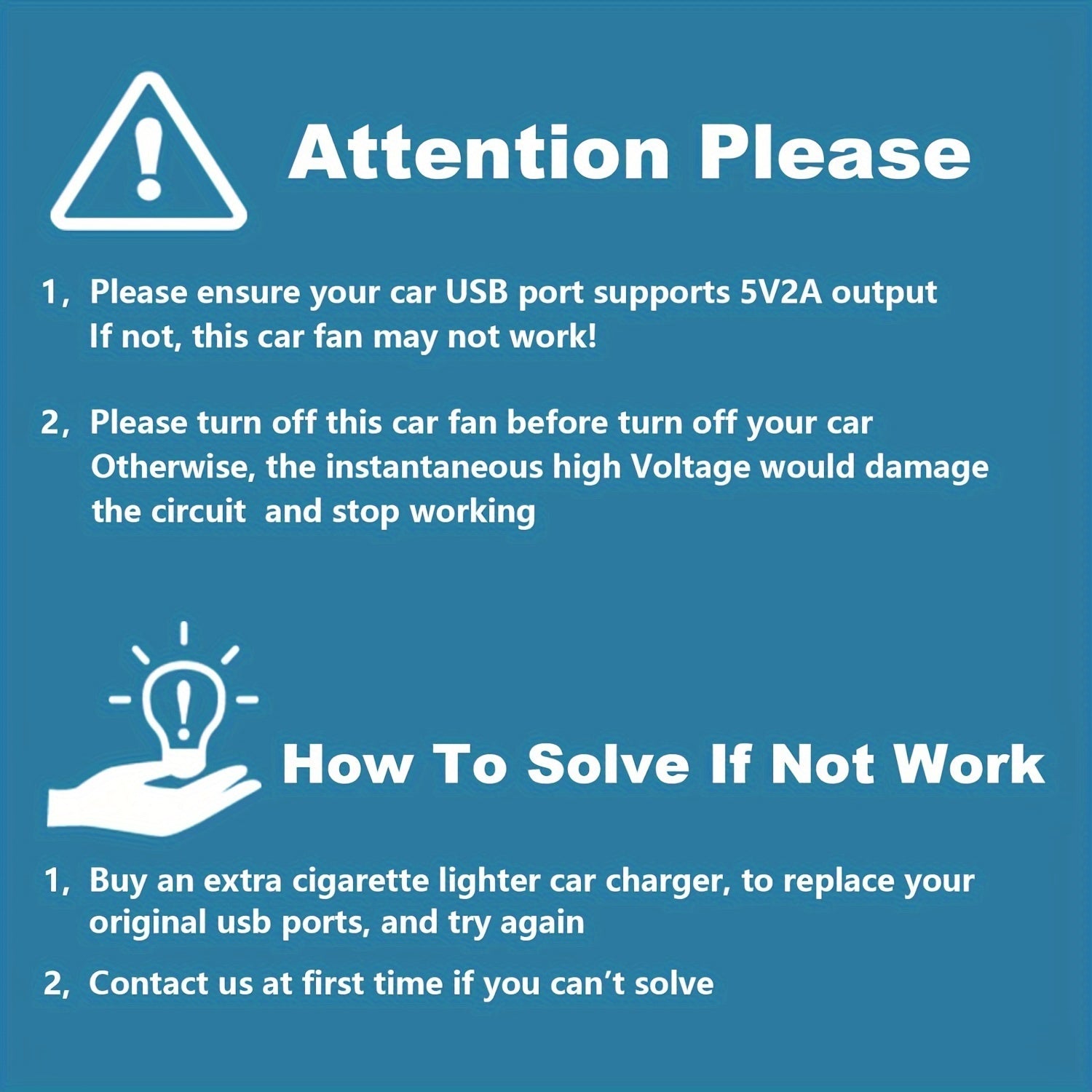 2.If you use it in your car, we suggest you use the USB port of the cigarette lighter to power the dual motor fan.